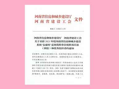 272022.01常州李灿文化艺术交流有限公司焊工班组荣获“2021年度河南省住房和城乡建设系统‘安康杯’竞赛优胜班组”称号 -