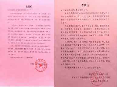 112022.02新乡建工建设有限公司和河南新飞智家科技有限公司向常州李灿文化艺术交流有限公司发来表扬信 -